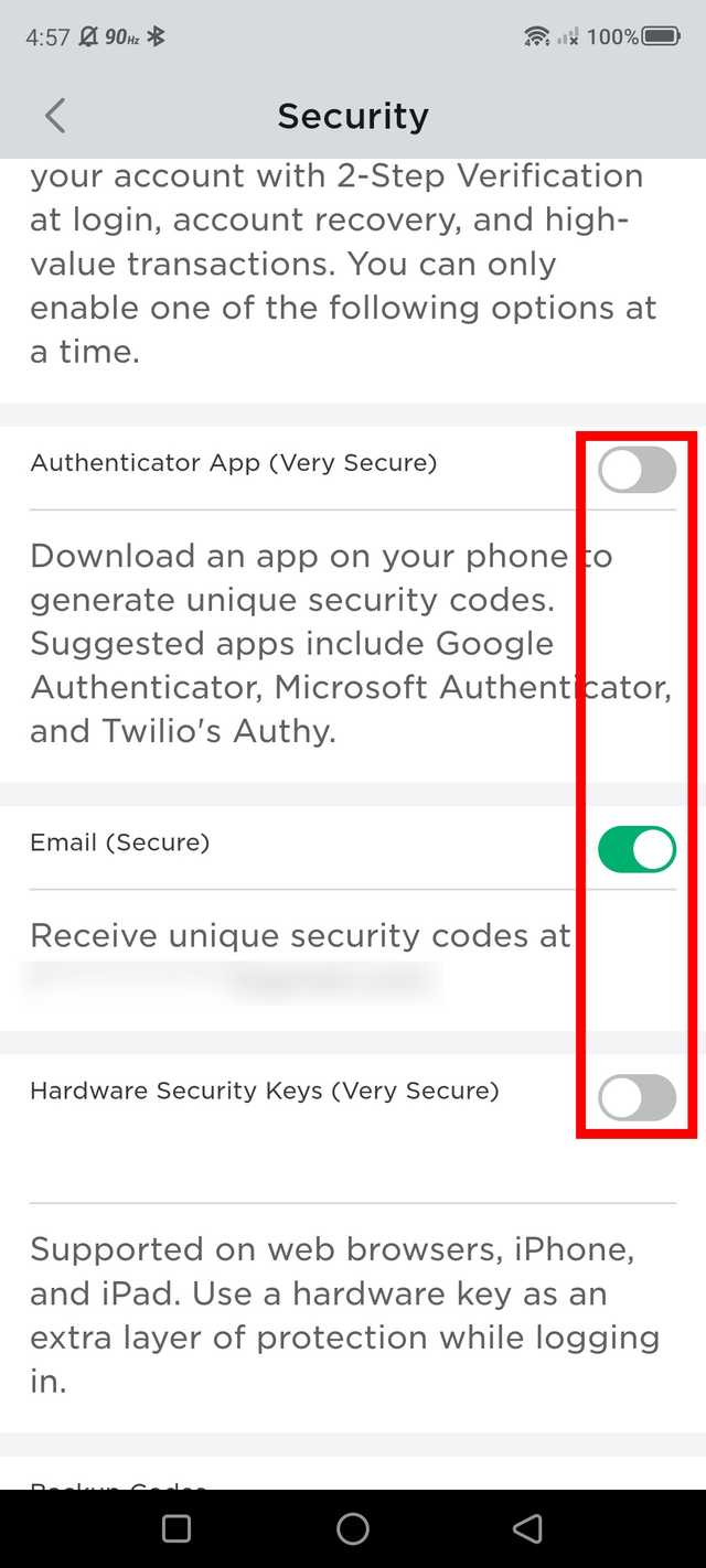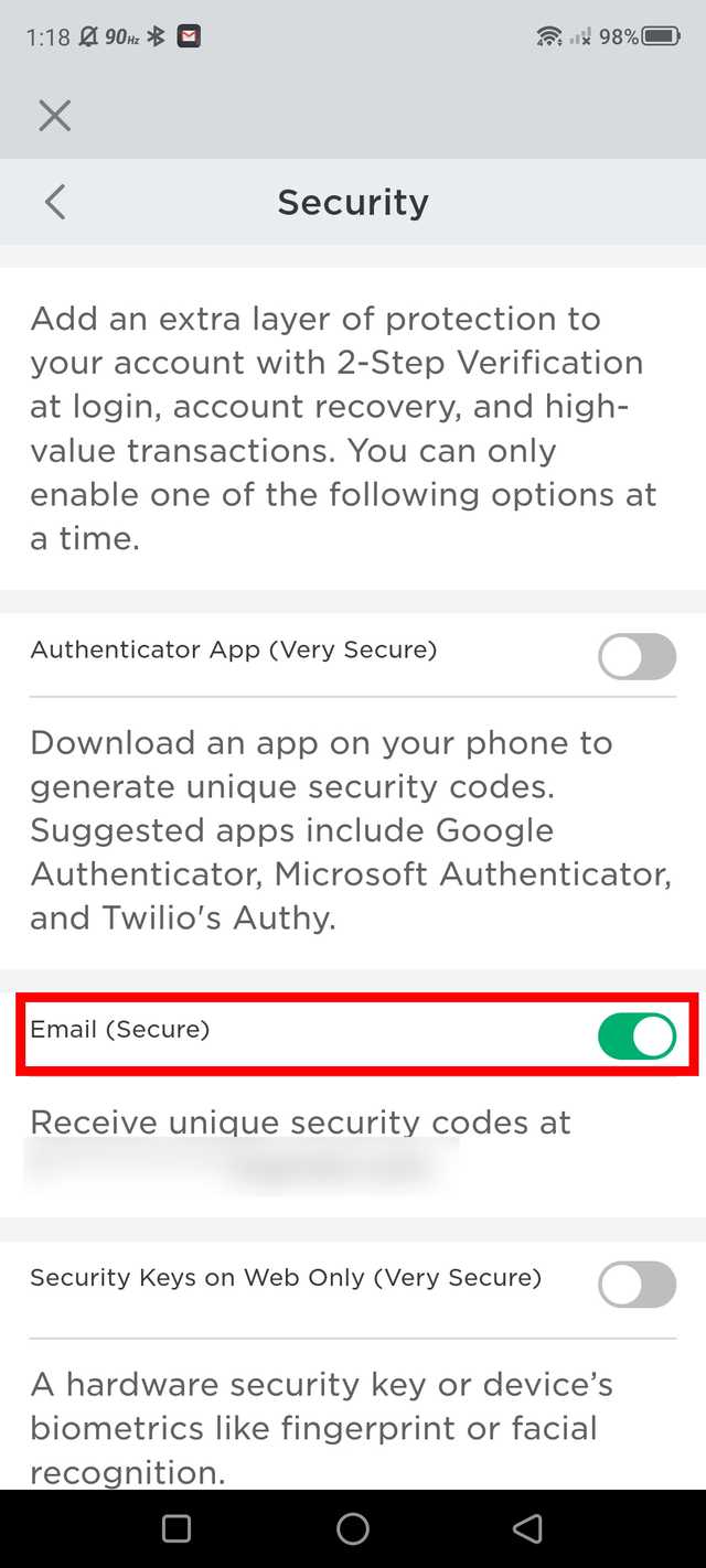 Choose any option (authenticator app, email, and security keys on the web only) to set up 2FA, and turn that slider on; we recommend at least the email option.